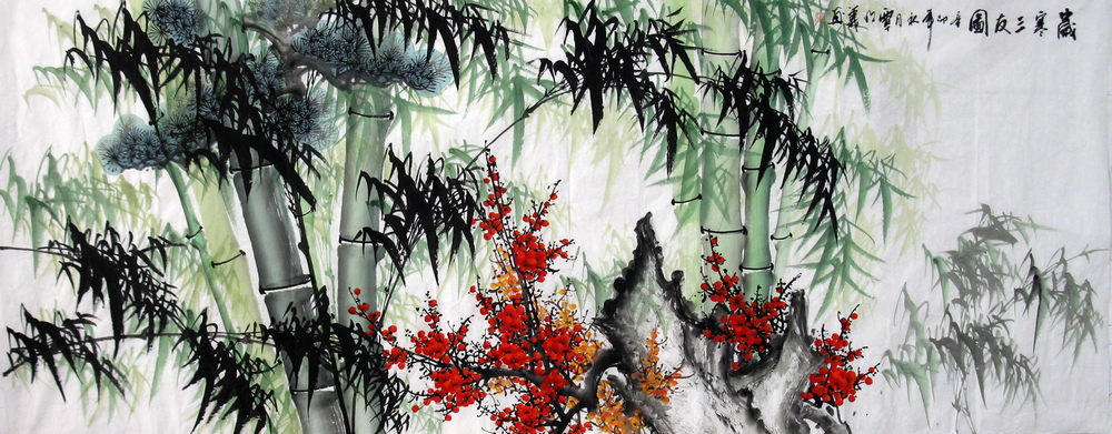 竹 หรือต้นไผ่ (君子之道)ทุกครั้งที่น้ำค้างแห่งเหมันตฤดูร่วงลง พืชพันธุ์ต่างๆก็ค่อยๆเหี่ยวเฉาไป แต่ต้นไผ่กลับไม่สะทกสะท้านต่อเกร็ดน้ำแข็ง ที่ปกคลุม คงยืดหยัดอยู่ท่ามกลางกระแสลมและหิมะ ผู้คนจึงยกย่องว่าเป็นตัวแทนของความจงรักภักดีและความอ่อนน้อมถ่อมตน บางครั้งก็ถูกเรียกอย่างไพเราะว่า "จวินจื่อ"(สุภาพบุรุษ)